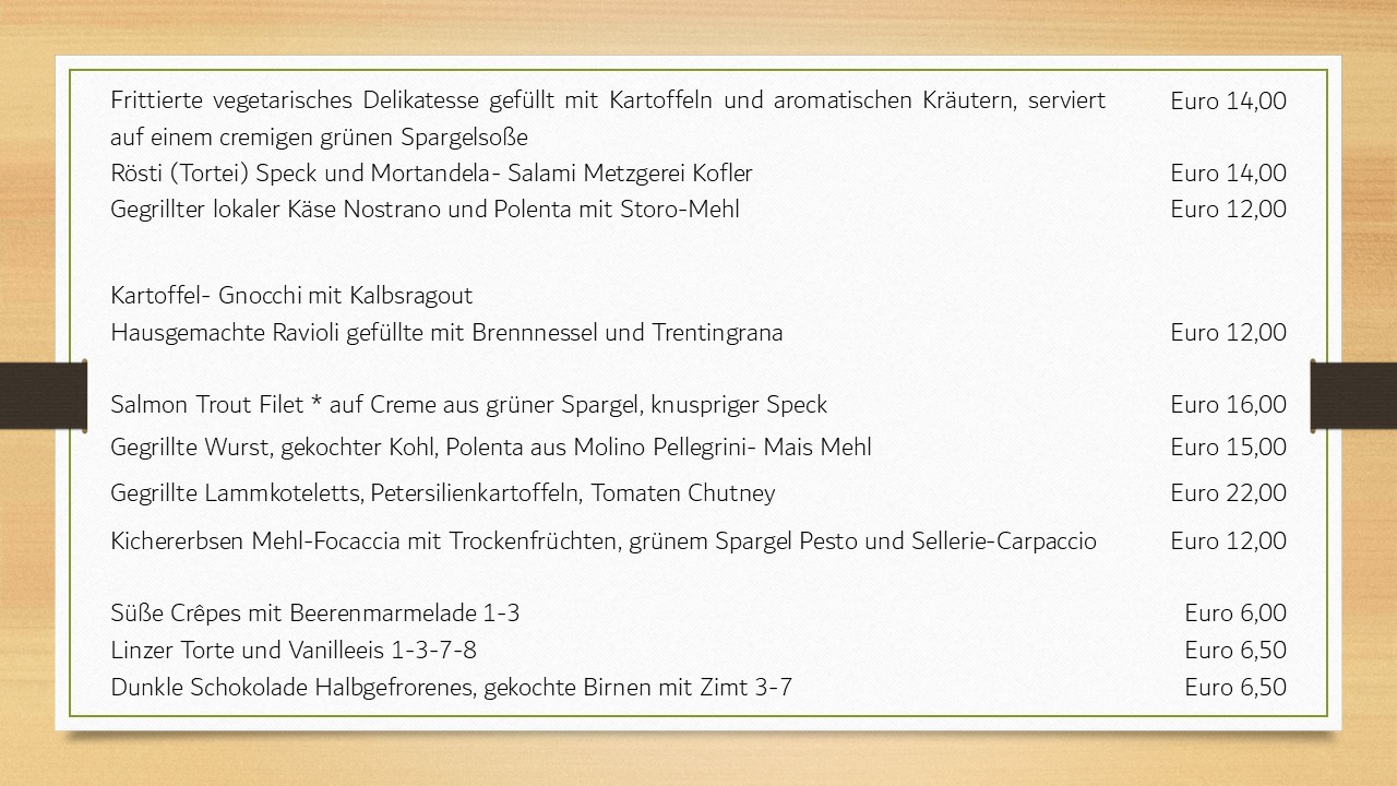 Auf Reservierung werden Abendessen oder Mittagessen organisiert, um verschiedene freundliche, familiäre oder geschäftliche Veranstaltungen zu feiern. Für spezielle Bedürfnisse oder Lebensmittelallergien bieten wir eine alternative Speisekarte (auch vegetarisch oder vegan), um besser die Wünsche unserer Gäste zu treffen. Noch mehr hier: https://www.awanderlustforlife.com/visit-trentino-for-a-foodie-trip-to-italy/